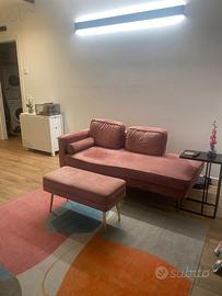 Vendo il mio elegante divano chaise longue in velluto rosa e con chaise longue a sinistra. Il divano ha due anni ed è molto ben tenuto, lo vendo perché abbiamo la necessità di sostituirlo con un divano letto. Ecco le dimensioni: larghezza: 171 centimetri profondità: 79 centimetri altezza: 63 centimetri dimensioni seduta: 159 x 49 centimetri. È un velluto molto morbido al tatto e facile da pulire. Piedini in metallo color oro e struttura rigida in legno. Tutto molto elegante e dal design moderno. Se interessati, lo vendo insieme al pouf contenitore. Anche questo in velluto rosa e con piedini in metallo color oro!