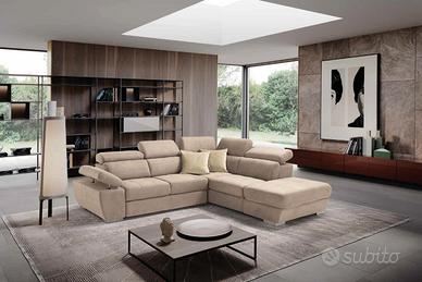 Versione angolare con pouf terminale contenitore misure 245x285x105 e 5 poggiatesta reclinabili