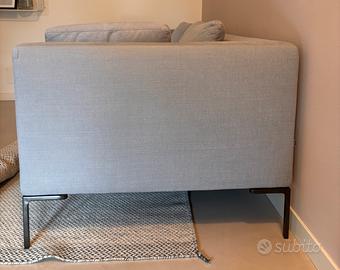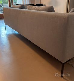 Il divano Charles è un’icona del design contemporaneo, celebre per la sua immagine leggera ed elegante. Il dettaglio distintivo è dato dai piedini a forma di “L” rovesciata in pressofusione di alluminio. I piedini sono in fusione di alluminio, con puntali in materiale termoplastico. Rivestito in tessuto, questo esemplare si presenta in ottimo stato di conservazione.