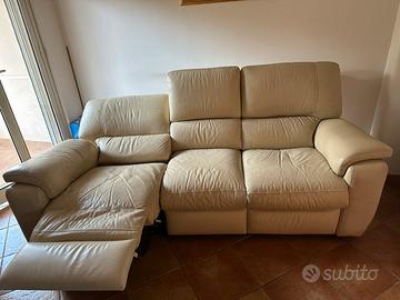 Vendesi divano Chateau d’Ax in pelle, color beige, 3 posti, col sistema relax. Misure in cm: lunghezza 215, altezza 98, larghezza/profondità 105 (170 col sistema relax azionato). Condizioni: come da foto. Ritiro presso venditore.