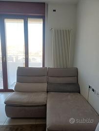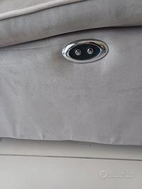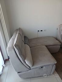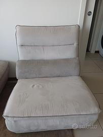 Divano Chateau d'Ax. 5 posti, penisola + chaise longue + seduta normale. Le sedute sono staccabili tra loro. Il tessuto é alcantara, color tortora. No bracioli.