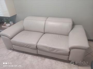 divano con doppio relax elettrico e poggiatesta regolabili, lunghezza 205cm profondità 99cm, pelle un po' consumata solo su una seduta, parte meccanica ed elettrica perfettamente funzionante