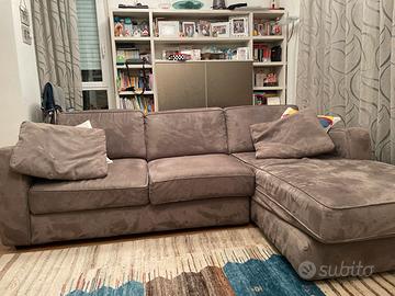 Vendo divano con chaise longue, lungo 2,56 mt. La copertura nelle foto è in microfibra di colore grigio. Compreso con il divano c'è un secondo rivestimento in tessuto, di colore marrone . L'oggetto si trova a San Marino .