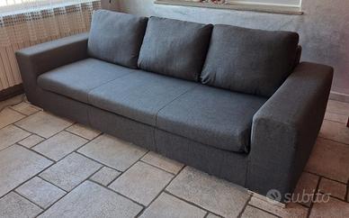 Vendo divano Chateau d'Ax 3 posti, lunghezza 245 cm, profondità 100 cm, altezza 80 cm + Pouf 100 cm × 100 cm, da utilizzare come terminale. In tessuto grigio antracite.