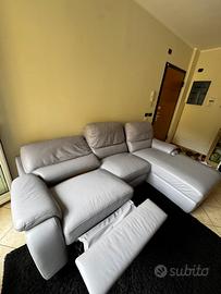 Come da titolo divano chateau d’ax con chaise longue e poltrona elettrica fino a posixione distesa sul lato. Usato normali segni di utilizzo e qualche graffiatura di gatto.