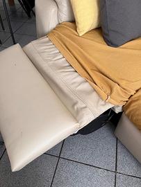 Divano Chateau D’Ax in pelle beige con poggiapiedi reclinabile.