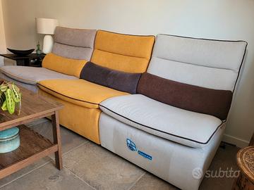 Vendo divano componibile chateux d'ax pari al nuovo, non presenta nessun difetto, è sempre stato coperto da un telo. Il divano è composto da 3 maxi poltrone da 80 cm di larghezza, per un totale di 2 metri e 40 centimetri, di cui una reclinabile con sistema elettronico (come si vede in foto c'è ancora la pellicola originale del poggi piedi).