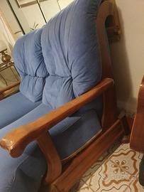 vendo divano chateau d'ax stile arte povera in rovere/castagno scuro, tessuto antimacchia blu tipo alcantara