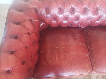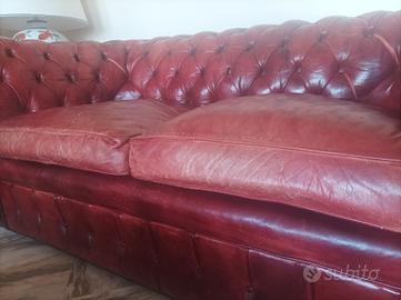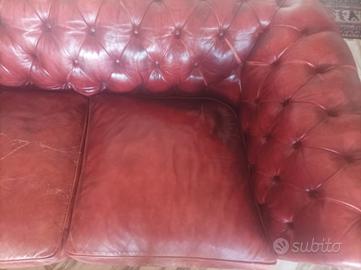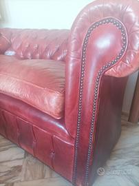 Splendido divano Chesterfield a 2 posti, caratterizzato dalla classica trapuntatura a capitonné sullo schienale e sui braccioli. Realizzato in pregiata pelle color oxblood/burgundy, che conferisce un tocco di eleganza senza tempo a qualsiasi ambiente. Il divano poggia su ruote, ideali per facilitare il posizionamento e i braccioli sono rifiniti con chiodini metallici. Il divano è un usato originale e presenta una bella patina dovuta al tempo, che gli conferisce un carattere vintage unico. La struttura è solida e la seduta è confortevole. Le foto allegate mostrano dettagliatamente le condizioni del divano, inclusa la naturale usura della pelle. Dimensioni 170x90 cm Solo ritiro