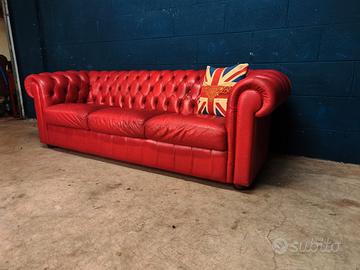 Divano club in vera pelle red leather british in stile Chester stile Chesterfield club con lavorazione capitonné su schienale, e braccioli, con bottoni rivestiti dello stesso materiale. I Ideale per ambienti classici e moderni, poltrone e divani abbinati disponibili