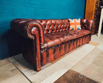 Divano club in vera pelle Bordeaux vintage leather british in stile Chester stile Chesterfield club con lavorazione capitonné su schienale, e braccioli, con bottoni rivestiti dello stesso materiale. I Ideale per ambienti classici e moderni, poltrone e divani abbinati disponibili