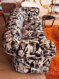 Si propone Divano Chester 3 posti. Realizzato da artigiano specializzato, in tessuto a stampa. Si tratta del divano classico Chester con lavorazione capitonnè sullo schienale e braccioli, che diventa particolare oggetto di design in ragione del tessuto utilizzato.
