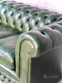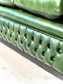 Divano Chesterfield 3 posti pelle verde originale vintage (Cod. G682)