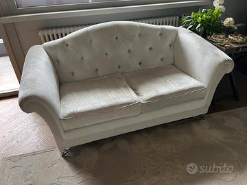 Bellissimo oggetto di design realizzato a mano da tapezziere di Santa Margherita (La casa e il mare). Tessuto in velluto e seta bianco. Disegno dello schienale in capitonnè e piedini in acciaio lucido lavorati.
