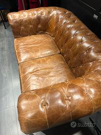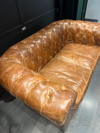 Divano Chesterfield due posti in pelle marrone, lunghezza 167 cm