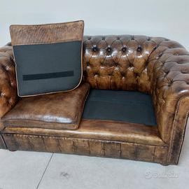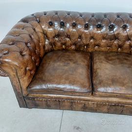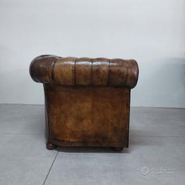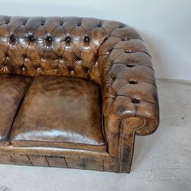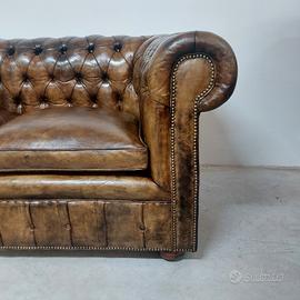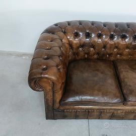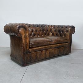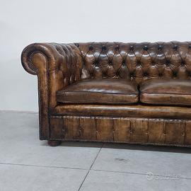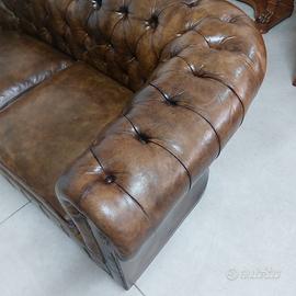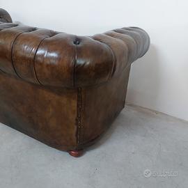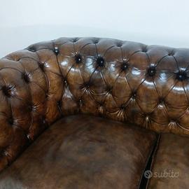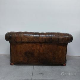 Divano Chesterfield club originale inglese anni 1950/60 in vera pelle marrone cuoio.