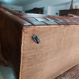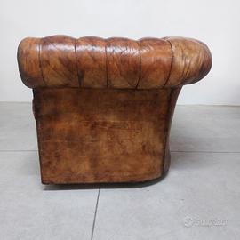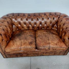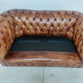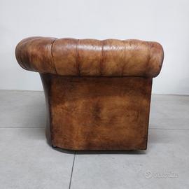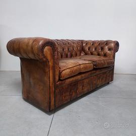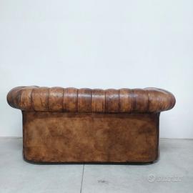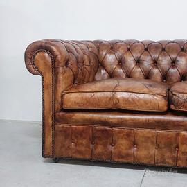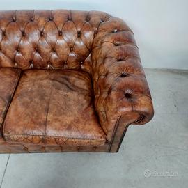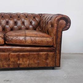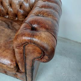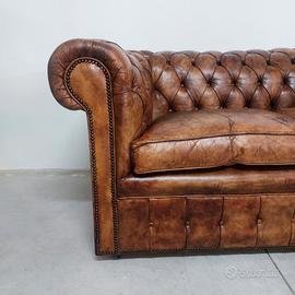 Divano chesterfield club originale inglese in vera pelle marrone cuoio cognac.