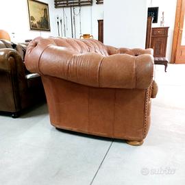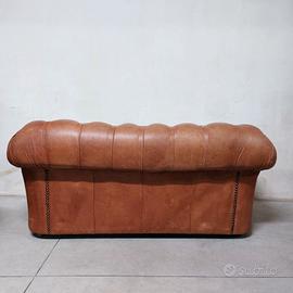 Divano chesterfield club originale inglese due posti in vera pelle marrone cuoio.