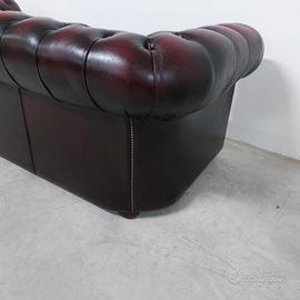 Divano chesterfield club originale inglese tre posti in vera pelle rosso bordeaux.