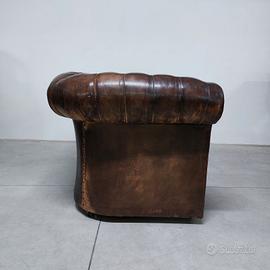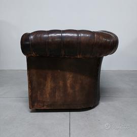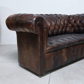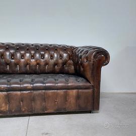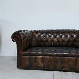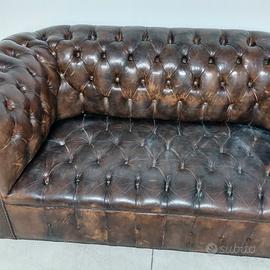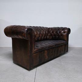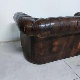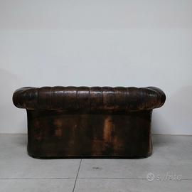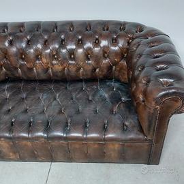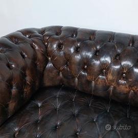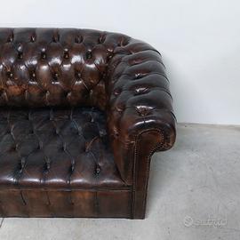 Divano chesterfield club originale inglese due posti in vera pelle marrone cuoio Testa di Moro.