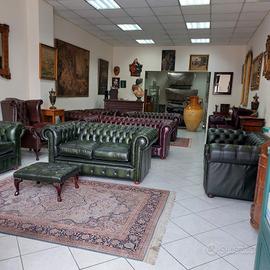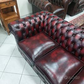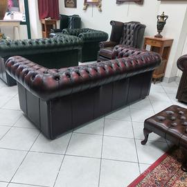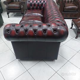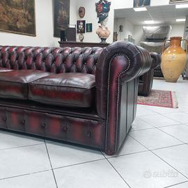 Divano chesterfield club originale inglese tre posti in vera pelle rosso bordeaux.
