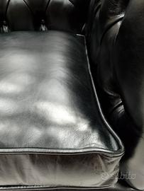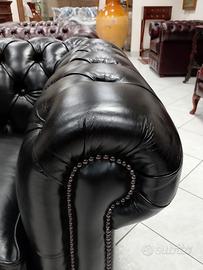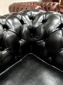 Divano chesterfield club tre posti originale inglese in vera pelle nera.