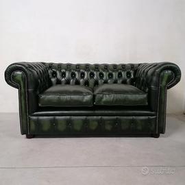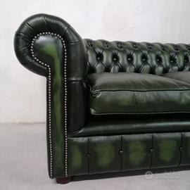Divano chesterfield club originale inglese due posti in vera pelle verde anticata.