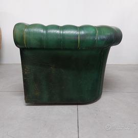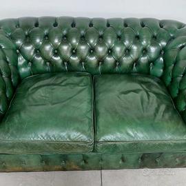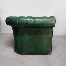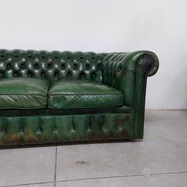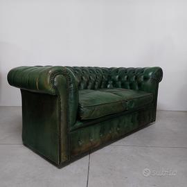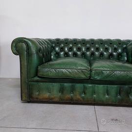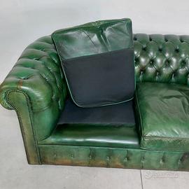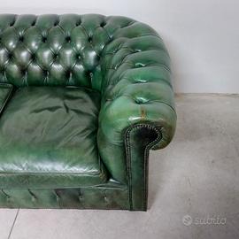Divano chesterfield club originale inglese in vera pelle verde anticata. Divano di ottima qualità costruttiva, imbottitura a molle... cuscini in piume d'oca. Misure totali larghezza 175cm... profondità 95cm... altezza totale 80cm... altezza seduta 50cm. Nel prezzo di vendita si effettua consegna in molte regioni d'italia. Per qualsiasi informazione Stefano
