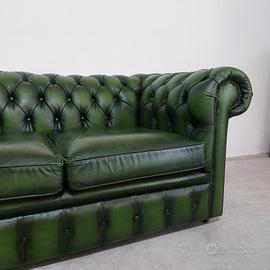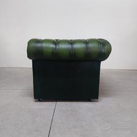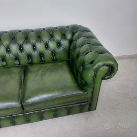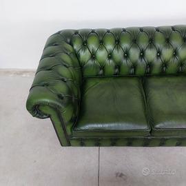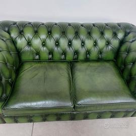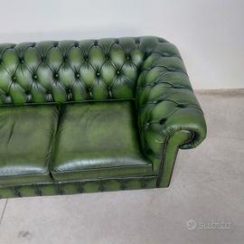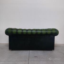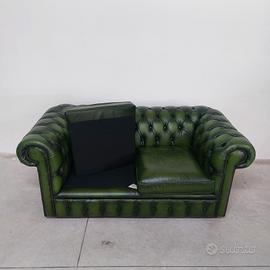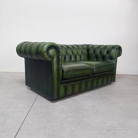 Divano chesterfield club originale inglese due posti in vera pelle verde.