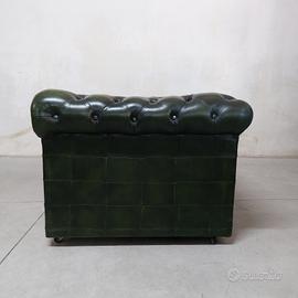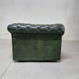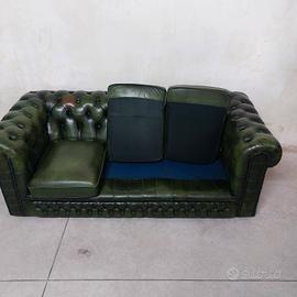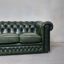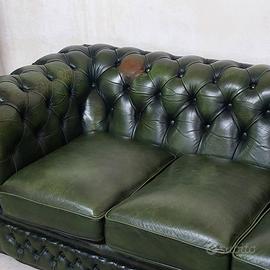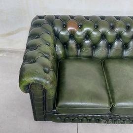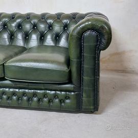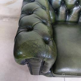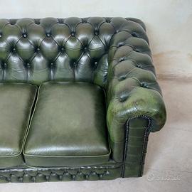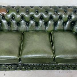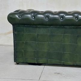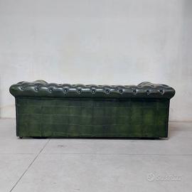 Divano chesterfield club originale inglese tre posti in vera pelle verde anticata.