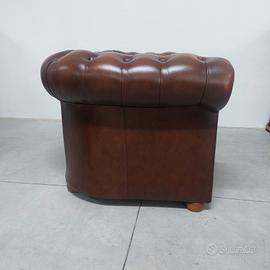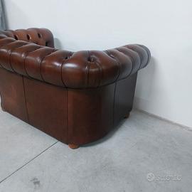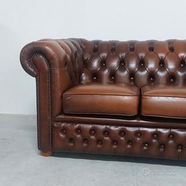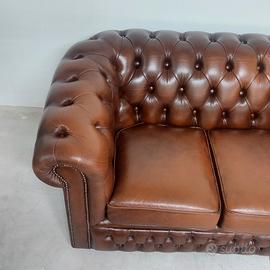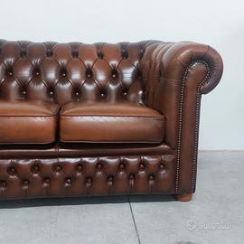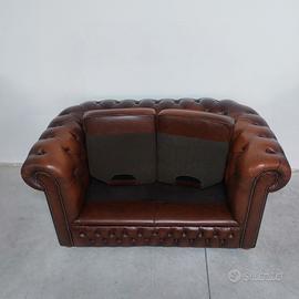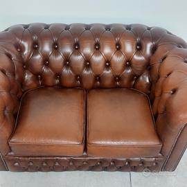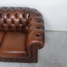 Divano chesterfield club due posti originale inglese vintage in vera pelle marrone cuoio.