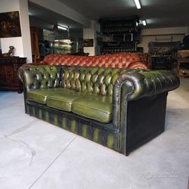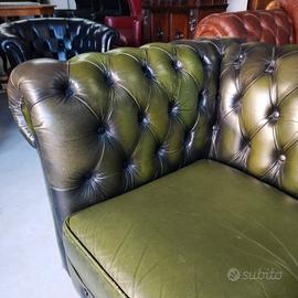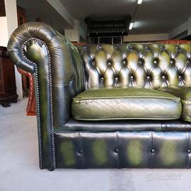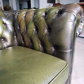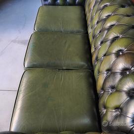 Divano 3 posti ( chester ) chesterfield modello club vintage inglese originale in pelle verde anticato ( Antique Green ).