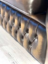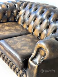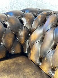 Divano Chesterfield 2 posti inglese vintage in pelle marrone - gold (Cod. G623)