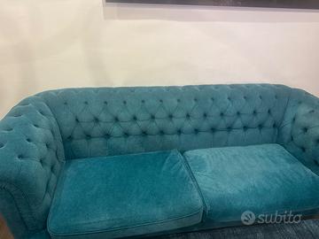 Vendo divano tre posti chesterfield acqua marina tessuto idrorepellente pagato 2800 comprato nel 2022 da de riso