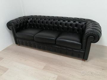 Divano Chesterfield in vera pelle nera, misura 2 metri e 20 cm La pelle utilizzata è molto morbida al tatto.
