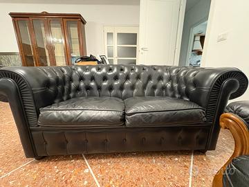 Bellissimo divano chesterfield di vera pelle nera in ottimo stato. Ritiro piano terra