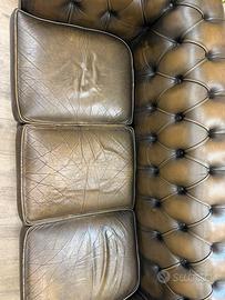 Divano stile Chesterfield, originale inglese, anni 80, 90, perfette condizioni, con borchie originali molto rare in questa tipologia, pelle non strappata, cuscini originali!