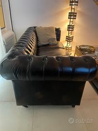 Divano imbottito in pelle capitonnè marrone moka cuoio 3/4 posti. Anno 2019. Condizioni perfette. Pelle di alta qualità preservata benissimo