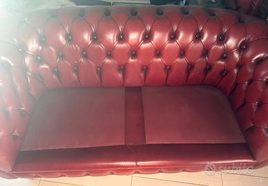 Divano Chesterfield di 2 metri (2/3 posti), rivestito in pelle rossa bordeaux anticata a mano, capolavoro di artigianalità italiana , in ottimo stato . Bellissimo come sempre . P.s. Ha qualche schizzo di pittura acrilica (removibile ) ma che io ho tenuto perche lo rende ancora piu’ bello ed unico . ( Vendo causa trasloco ) . Chi l’acquista dovrebbe venire a ritirala , io non mi occupo della spedizione . Grazie