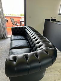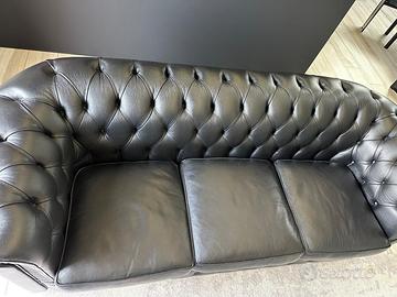 Vendesi divano a 3 posti Chesterfield in pelle , nero, usato ma in perfette condizioni. Eventualmente anche poltrona nera in pelle disponibile