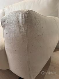 Divano in pelle totale bianca, buone condizioni, la penisola e la parte piu vissuta, bracciolo solo lato destro leggermente segnata come da foto.