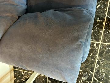 Vendesi bel divano originale Cinova 2 posti in alcantara blu, buono stato generale, segni di usura normali su sedute e braccioli, piuttosto lievi (niente di particolarmente evidente).