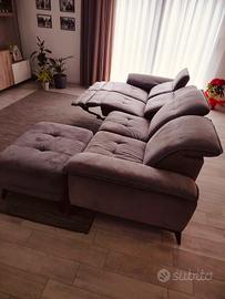 Vendo divano Clark Dondi Salotti quattro sedute con pouf. Colore grigio come da foto. Tessuto microfibra lavabile effetto cangiante sfumato. Il divano dispone di due sedute relax con pulsante elettrico, batteria ricaricabile (incluso anche carica batteria). Presente graffio su seconda seduta come mostrato in foto. Inoltre il poggia testa della seconda seduta con relax e della terza seduta senza relax è bloccato (non si riesce più a regolare). Costo di sistemazione die due poggiatesta 200 euro , preventivo fatto nel 2023.