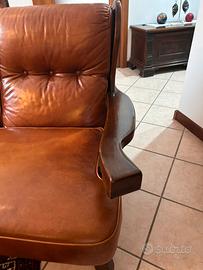 Divano classico tre posti struttura in legno e rivestimento in vera pelle/cuoio