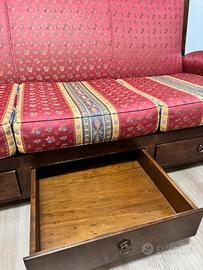 Vendo divano classico in legno 3 posti con cassetti. Ottime finiture di classe e prestigio.