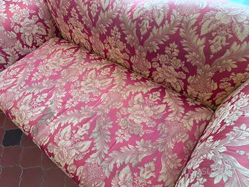 Rivestimento in tessuto damascato rosso con motivi floreali dorati