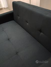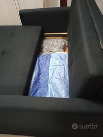 vendo divano colore nero 3 posti con contenitore larghezza 1,50 con ampia seduta in tessuto lavabile divano morto elegante e come un uovo ritiro a mano non spedisco