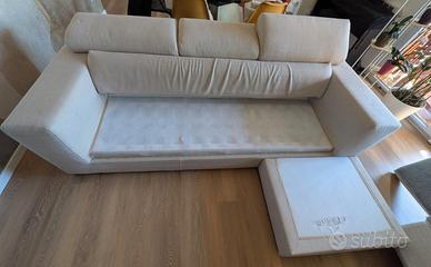 Vendo divano di Ricci Casa, con chaise longue. Sedute rimovibili e sfoderabili, interno in gomma piuma. Poggiatesta regolabili. La parte sotto della chaise longue appare danneggiata come in foto, ma non influisce sulla funzionalità del divano. Ritiro a carico dell'acquirente. Ritirabile dal 1 al 15 marzo. Prezzo trattabile