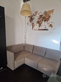 Divano 3/4 posti in tessuto misto lino/cotone color sabbia. Piedini a scomparsa. Cuscini sfoderabili e lavabili ad acqua. Misure 200cm x 150cm x 90cm