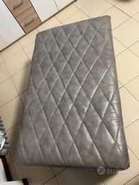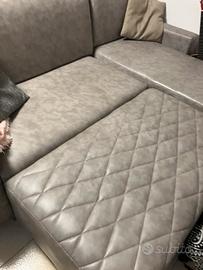 Divano artigianale pelle grigia, divisibile, con contenitore porta oggetti . Come nuovo, senza segni di usura e con pouff rettangolare. Da vedere.